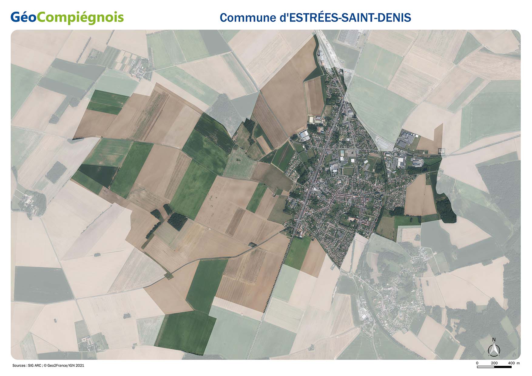 Orthophotoplan 2021 sur le territoire de la commune d'Estrées-Saint-Denis.