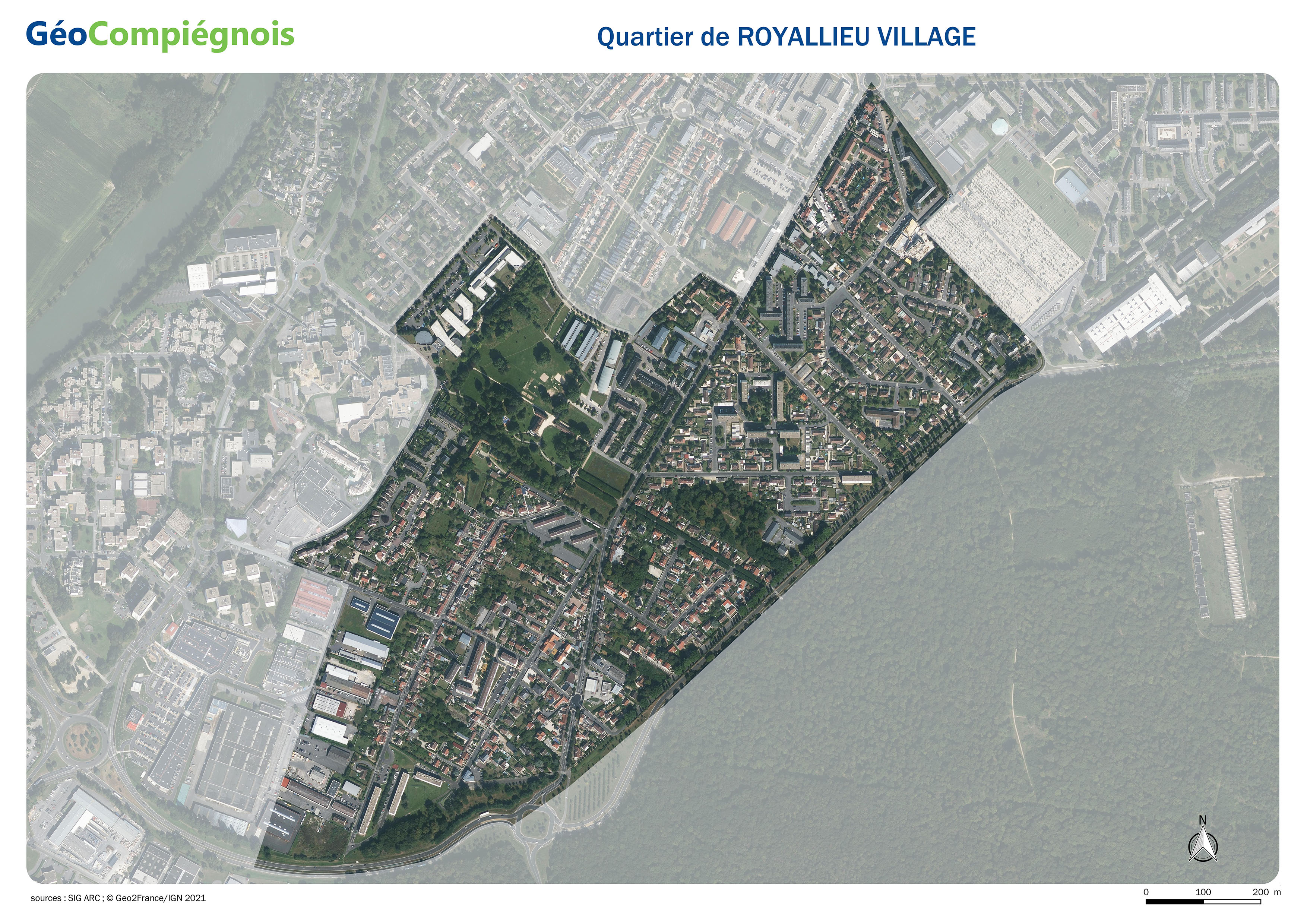 Orthophotoplan 2021 du quartier de Royallieu Village à Compiègne.