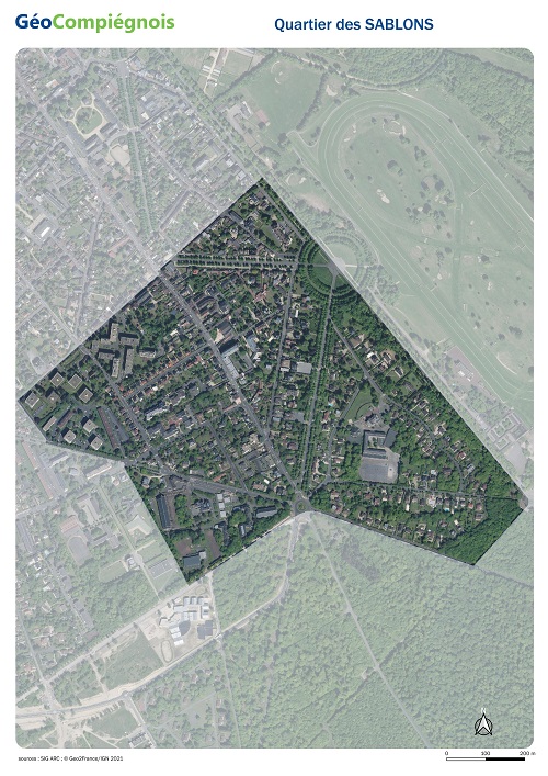 Orthophotoplan 2021 du quartier des Sablons à Compiègne.