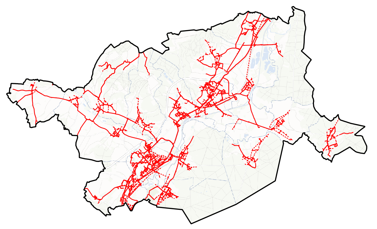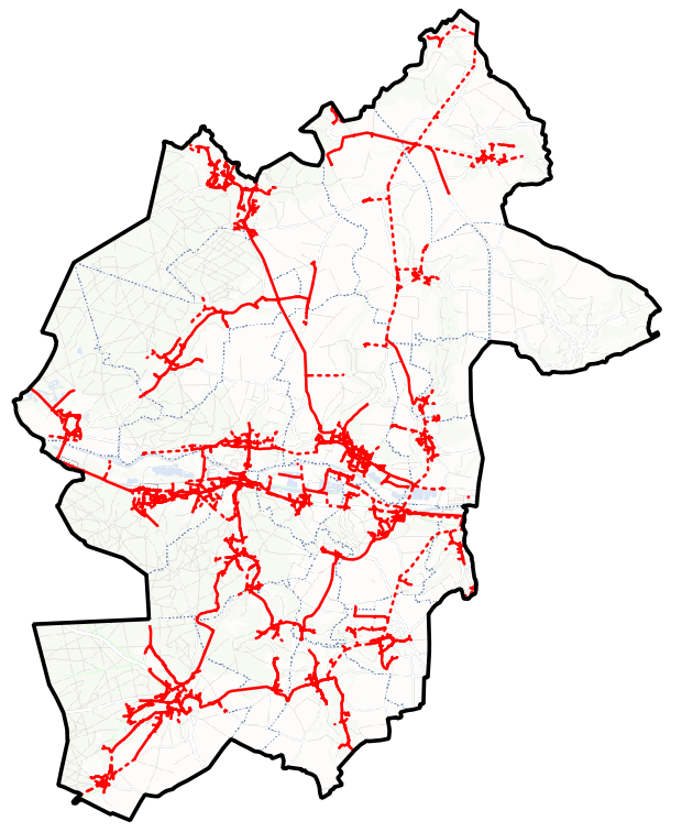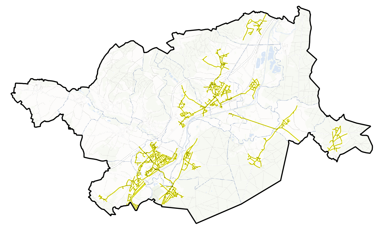 Ensemble des éléments techniques composant le réseau de distribution électrique basse (BT) et haute tension (HTA) sur la Communauté de Communes des Lisières de l'Oise. Le réseau comprend les câbles enterrés / aériens, les ouvrages fonctionnels du réseau (poste de distribution, poste source...) ainsi que les pylones de support.