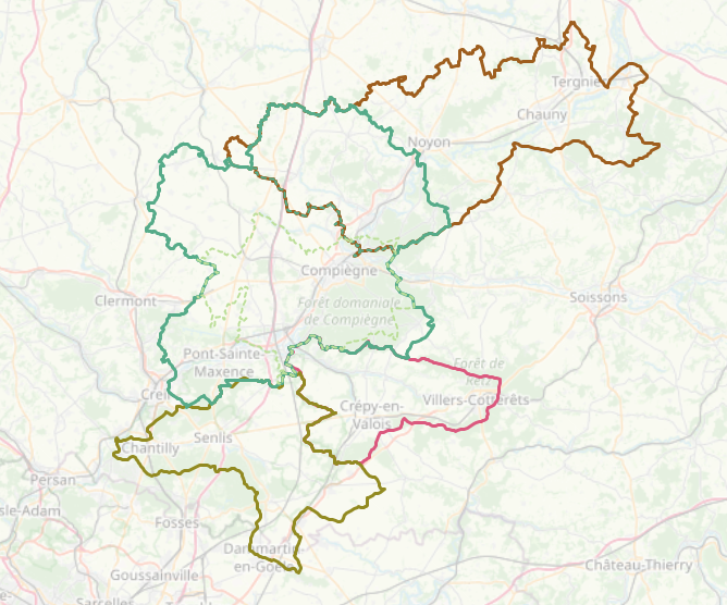 Ensemble des limites communales des communes appartenant à la Communauté de Commune de la Plaine d'Estrées.