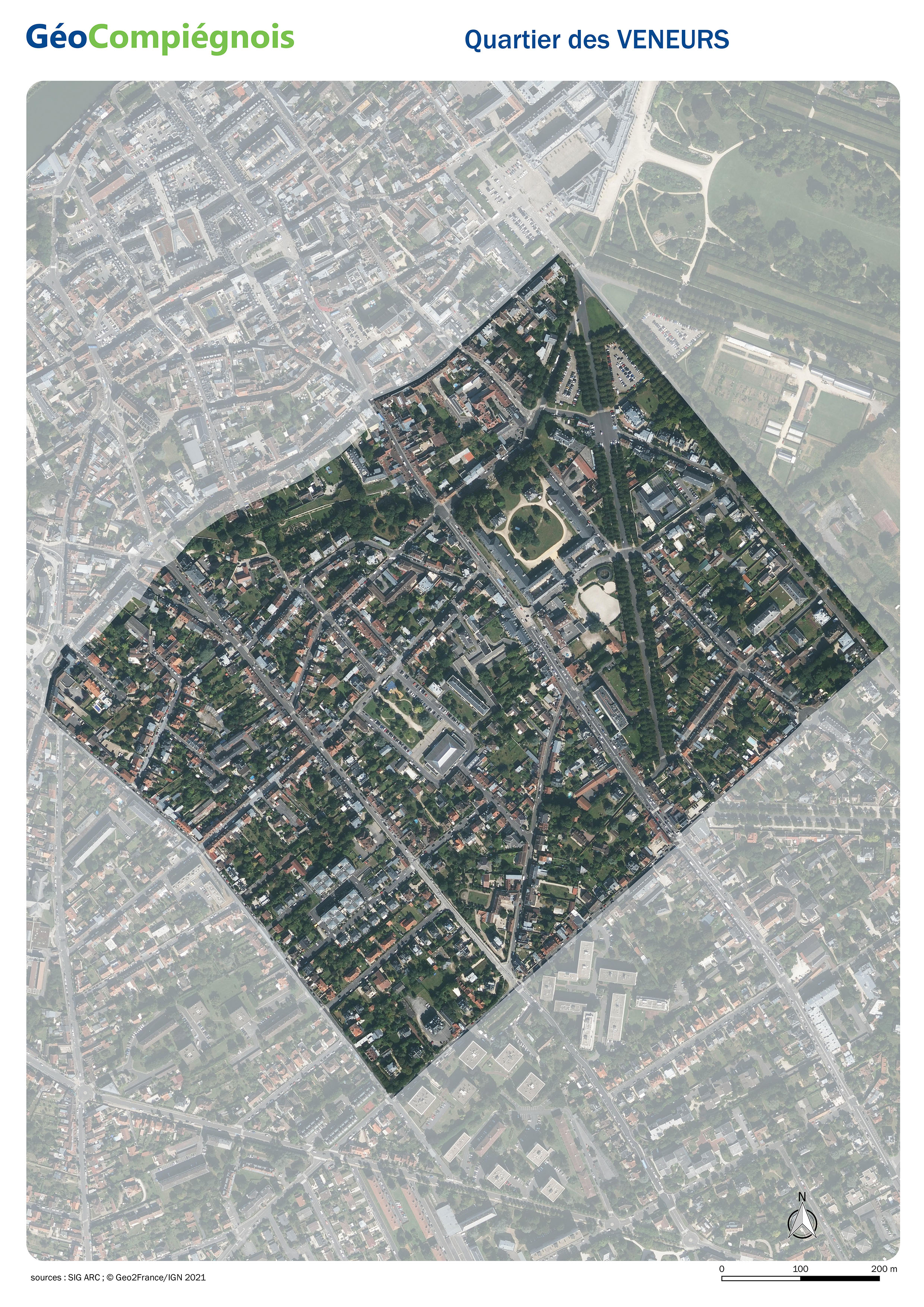 Orthophotoplan 2021 du quartier des Veneurs à Compiègne.