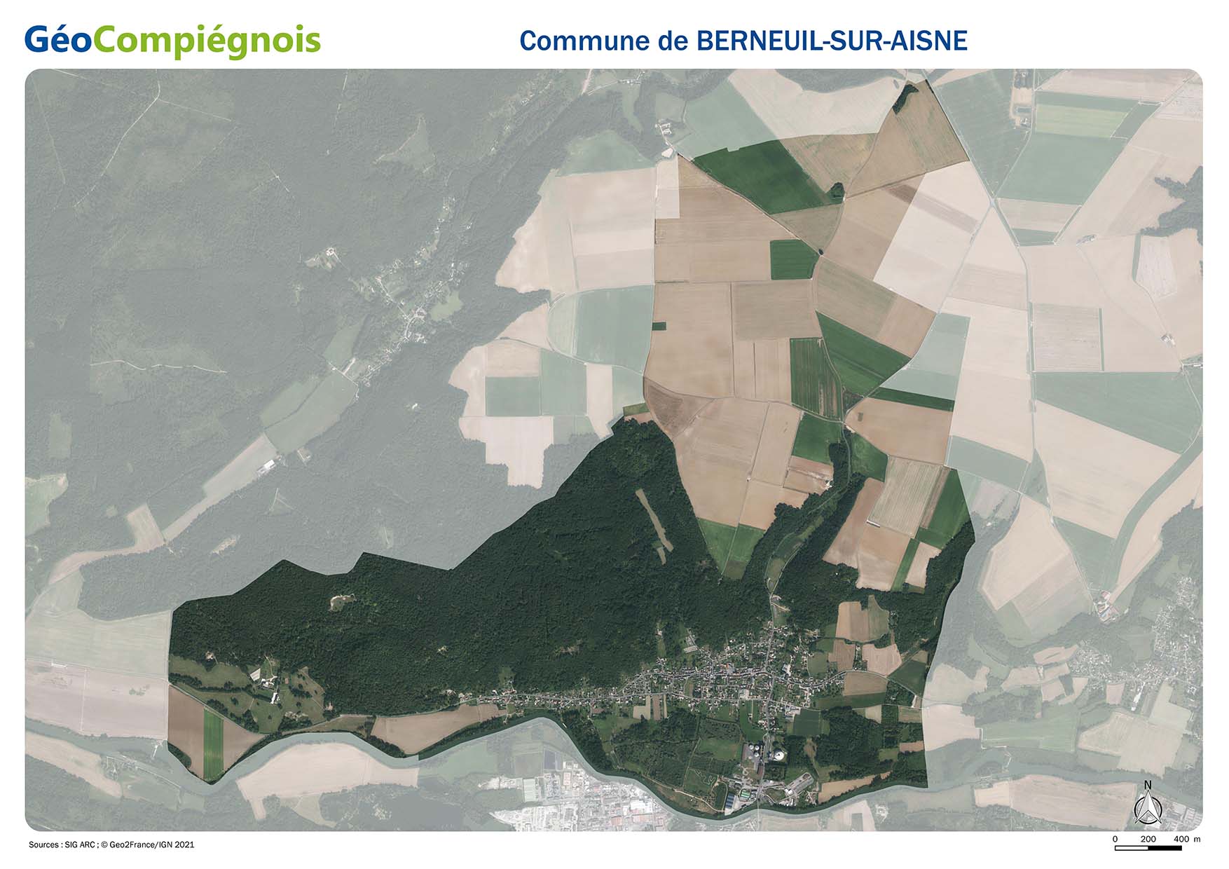 Orthophotoplan 2021 sur le territoire de la commune de Berneuil-sur-Aisne.