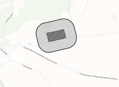 Les servitudes d'utilité publique sont des limitations administratives au droit de propriété, elles sont instituées, par un ou plusieurs actes, au bénéfice de personnes publiques, de concessionnaires de services ou de travaux publics, ou de personnes privées exerçant une activité d'intérêt général. La collecte et la conservation des servitudes d'utilité publique sont une mission régalienne de l'État qui doit les porter à la connaissance des collectivités territoriales afin que celles-ci les annexent à leur document d'urbanisme. Les servitudes d'utilité publique concernées sont celles définies par les articles L. 126-1 et R. 126-1 du code de l'urbanisme et leurs annexes. Les servitudes instituées par l'article L. 2223-5 du code général des collectivités territoriales au voisinage des cimetières (INT1) s'étendent dans un rayon de 100 mètres autour des nouveaux cimetières transférés hors des communes. Dans ce rayon : - nul ne peut, sans autorisation, élever aucune habitation ni creuser aucun puits; - les bâtiments existants ne peuvent être ni restaurés ni augmentés sans autorisation; - les puits peuvent, après visite contradictoire d'experts, être comblés par arrêté du préfet à la demande du maire. Cette servitude n'a pas pour effet de rendre les terrains compris dans ce rayon inconstructibles mais seulement d'imposer l'obtention d'une autorisation préalable délivrée par le maire en application de l'article R. 425-13 du code de l'urbanisme. Conformément à l'article R. 425-13, lorsque le projet porte sur une construction située à moins de 100 mètres d'un cimetière transféré, le permis de construire, le permis d'aménager ou la décision prise sur la déclaration préalable tient lieu de l'autorisation prévue par l'article L. 2223-5 du code général des collectivités territoriales dès lors que la décision a fait l'objet d'un accord du maire, si celui-ci n'est pas l'autorité compétente pour délivrer le permis. Cette servitude est uniquement présente sur 2 communes du Pays Compiègnois à savoir Remy et Tracy-le-Mont en l'état actuel des connaissances du Service de l'Information Géographique.